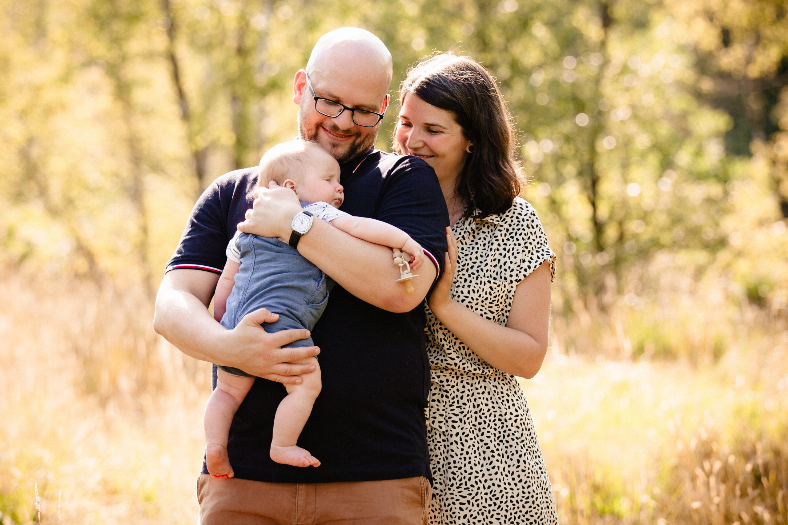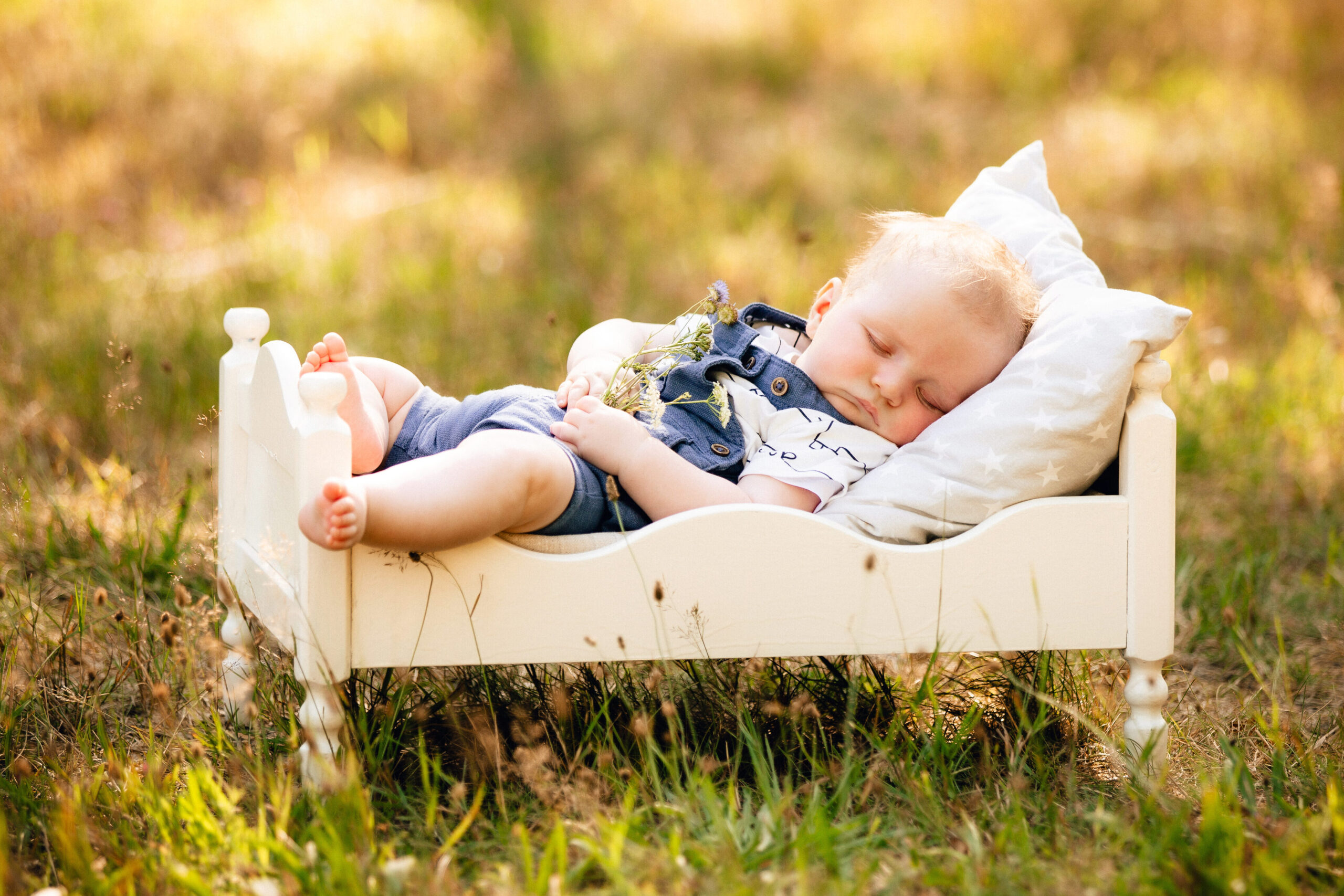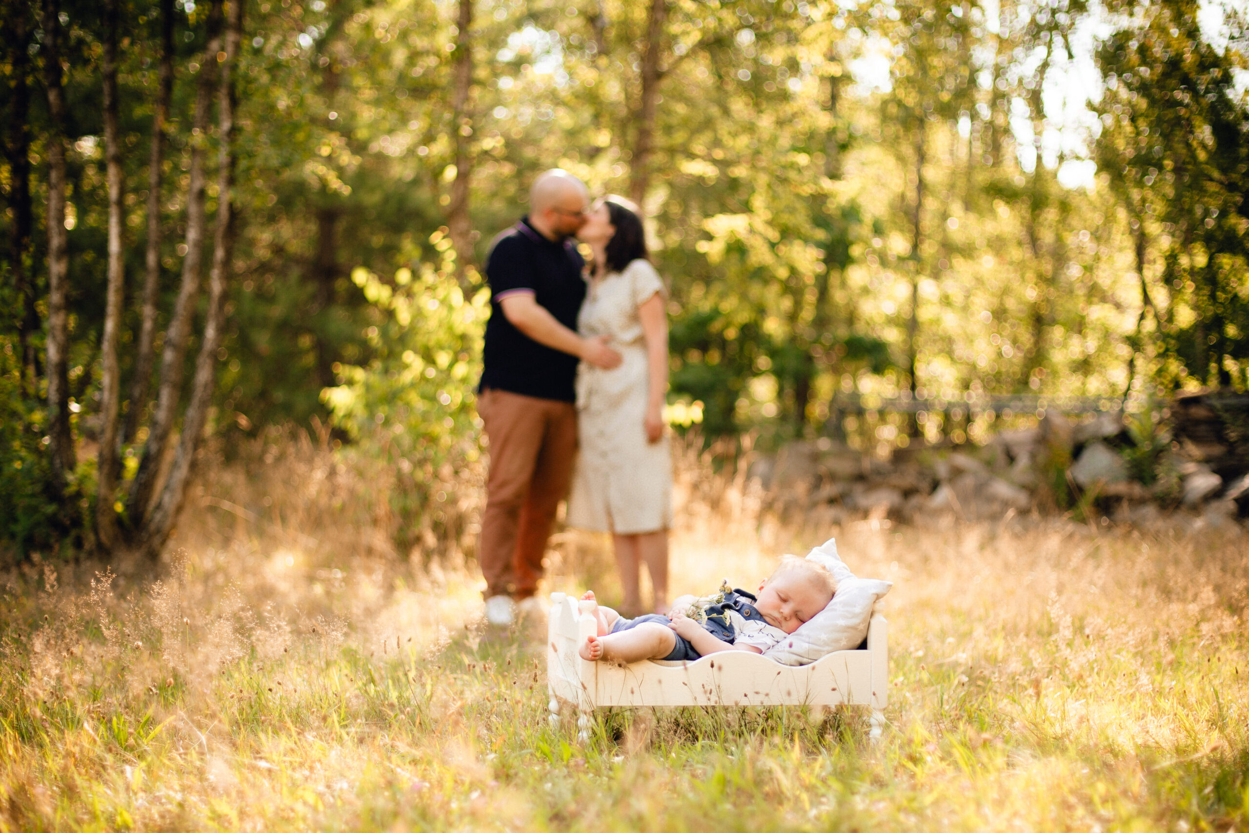 während ihn Mama und Papa liebevoll an sich drückten… und schwupp, fielen die Äuglein zu und der Bub war eingeschlafen. Von Vorteil ist, eine Decke dabei zu haben, um die kleinen Mäuse dann für ein Päuschen ins Gras zu legen. Hier hatte ich auch ein kleines Holzbettchen im Gepäck, wobei ich sonst meist auf jegliche unnötige Accessoires verzichte, um die Aufnahmen authentisch und natürlich zu halten.